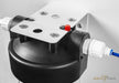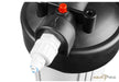 - Zur Entlüftung des Gehäuses halten Sie den roten Entlüftungsknopf an der Oberseite des Filterdeckels gedrückt, bis aus diesem Wasser entweicht.