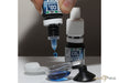 - Dauertest zur Düngekontrolle: Reagens in Dauertestgerät geben und im Aquarium mit Saugern an der Scheibe befestigen. Reagensfarbe mit Farbskala-Aufkleber vergleichen und Wert ablesen